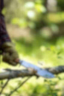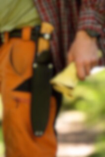 Villmarka stor har et blad med Skandinavisk slip og holk i rustfritt stål. Det gir det tradisjonelle skaftet den ekstra styrken kniven trenger når den blir brukt til å hugge med. Knivbladet har vår signatur; halvmånehakket i ryggen – for å løfte kaffekjelen av bålet. Kniven har et skaft i oliventre og fingervern.