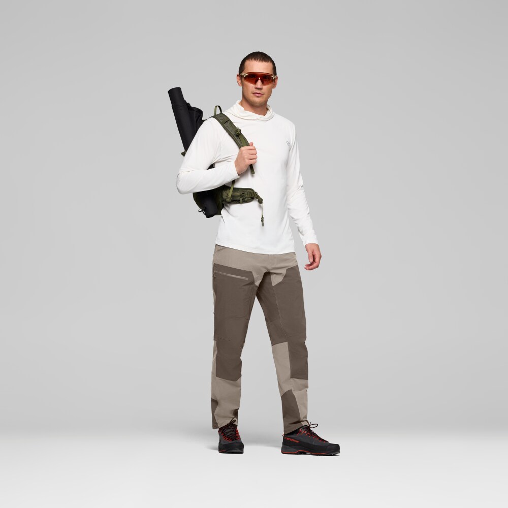 Buksen kombinerer et robust hovedmateriale med fleksible stretchpaneler, noe som gir en optimal balanse mellom slitestyrke, komfort og bevegelighet. Den egner seg godt til alt fra fotturer og jakt til lengre ekspedisjoner.