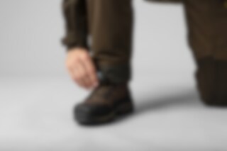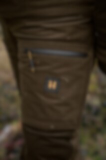 Forest Hunter Pro GTX-buksene er designet for aktiv jakt i skog og høyereliggende miljøer. De er konstruert med en trelags GORE-TEX-membran, og er bygget for å tåle ekstreme værforhold. Disse buksene har en stillegående, børstet overflate som er både robust og lett. GORE-TEX-membranen gir fullstendig vind- og vanntett beskyttelse med høyt vannsøyletrykk, samtidig som den puster. Holdbar vannavstøtende (DWR (Durable Water Repellent))-behandling avviser også smuss og fuktighet. Fukttransporterende stoff på innsiden holder deg tørr og komfortabel. Ytterligere funksjoner inkluderer front- og lårlommer med vanntette glidelåser, justeringsstropper ved ankler og knær, patronholder, D-ring for utstyrsfeste og ventilerte lår med vanntette glidelåser. Perfekt for krevende jaktturer.