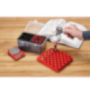 Settet inkluderer en universell trakt med utskiftbare munnstykker som sikrer tett passform mot hylsehalsen, og hindrer søl og statisk oppbygging. Hver adapter er merket etter kaliber, slik at du raskt finner riktig størrelse. Alt leveres i en praktisk oppbevaringsboks som holder utstyret ryddig og lett tilgjengelig.